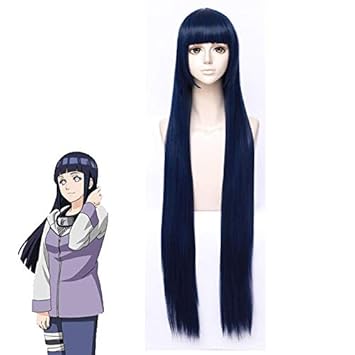 Anime Naruto Hyuga Hinata Purple Black Mix 100 Cm Long Straight Hair Tidy Bang Cosplay Wigs Free Hair Net Amazon De Toys